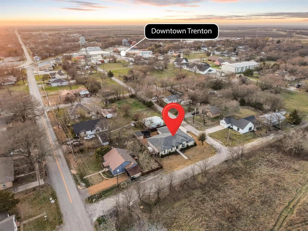 No HOA! No PID! Stunning custom home with a bright, airy single-story floor plan designed for multi-generational living, featuring two full primary suites. The open-concept layout blends comfort and style with architectural details throughout, including elegant coffered ceilings, graceful arches, and a neutral color palette. Step through dramatic double front doors into a welcoming foyer with a private office nearby, perfect for working from home. At the heart of the home, the spacious living area offers both everyday comfort and effortless entertaining, highlighted by a cozy fireplace and easy media setup. The chef-inspired kitchen features stainless steel accents, durable quartz countertops, and an oversized island ideal for meal prep or casual gatherings. Enjoy both counter seating and a dedicated dining area, perfect for everything from homework to hosting guests. The tranquil primary suite offers a spa-inspired bath with dual vanities, a sleek glass-enclosed shower, and a generous walk-in closet. A second primary suite provides additional privacy with its own spacious layout, dual vanities, and custom shower, ideal for extended family or guests. Bedrooms throughout the home are generously sized, including two additional bedrooms, another full bath, and a convenient half bath. Situated on a corner 0.23-acre lot, the outdoor space features a covered patio, storage building, and gated side access, perfect for boat or trailer storage. With double front doors, elegant exterior lighting, professional landscaping, and a durable low-maintenance design, this home offers exceptional curb appeal and everyday functionality. Conveniently located near major thoroughfares and just minutes from Trenton ISD schools, downtown, dining, and shopping, this move-in-ready home is the perfect blend of comfort, flexibility, and convenience. Quick commute to McKinney, Sherman, Bonham & Greenville. Schedule your tour today!