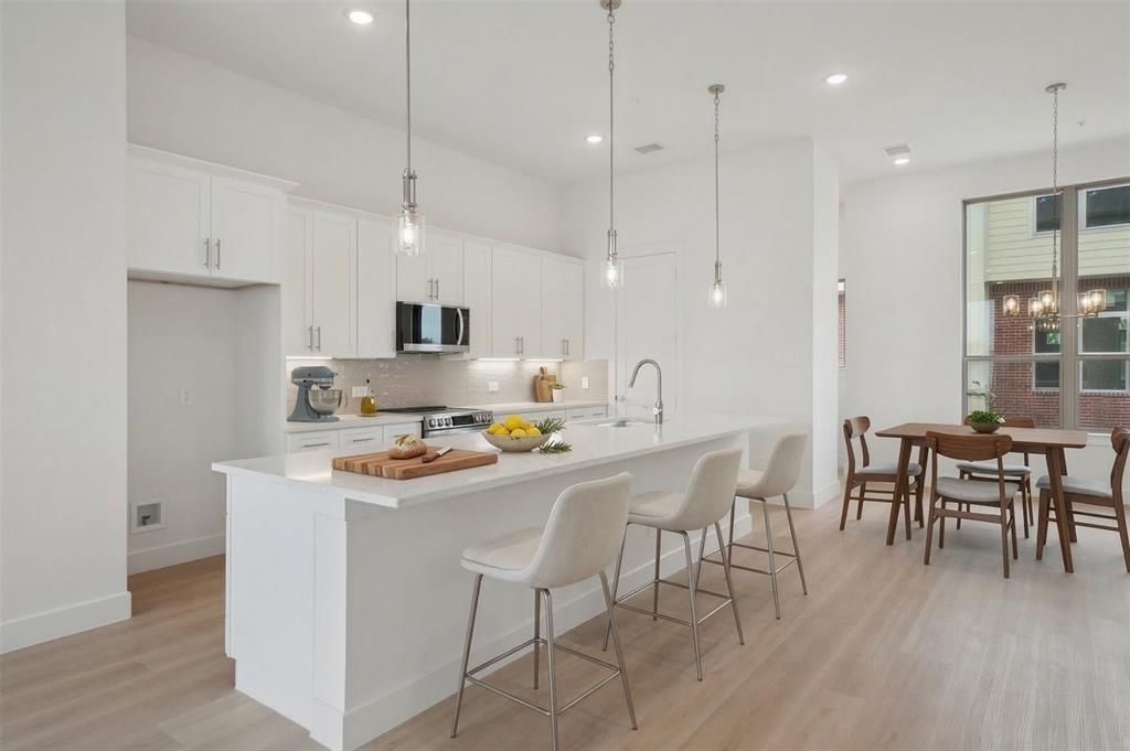 Newly completed, designer-finished townhome offering clean lines, modern luxury, and effortless style. Premium luxury vinyl plank flooring runs throughout, paired with sleek designer tile in the bathrooms and utility areas for a polished, contemporary look. The open-concept main living level impresses with 11-foot ceilings, oversized windows allowing an abundance of natural lighting. Stunning kitchen is anchored by a 12-foot quartz island, soft-close custom cabinetry, and modern hardware. The living area is elevated by a 72-inch horizontal fireplace, delivering both style and warmth. Goodland Townhomes is an exclusive, contemporary community of just 25 three-story luxury residences, thoughtfully designed for modern urban living. Prime location, just minutes from downtown Farmers Branch, this evolving area offers walkable access to restaurants, Cox Farms Market, and the DART Train system, parks, jogging & bike trails, and so much more! Photos are representative; finishes may vary by unit.